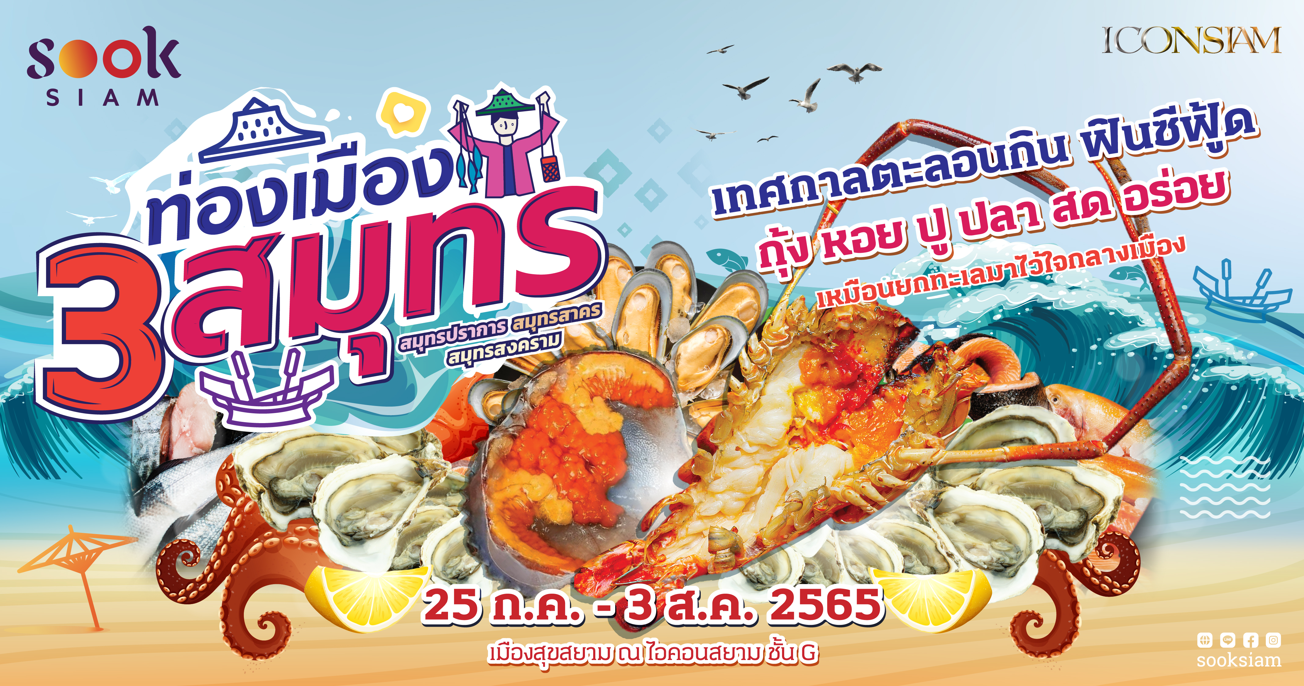 25 กรกฎาคม 2565 - 3 สิงหาคม 2565Seafood Lover ห้ามพลาด!! เตรียมพบกับเทศกาลอาหารทะเล สุขสยามร่วมกับกรมประมง พาท่องเมือง 3 สมุทร ตะลอนกิน ฟินซีฟู้ด กับกองทัพกุ้ง หอย ปู ปลา ที่สดเหมือนยกทะเลมาไว้ใจกลางเมือง เลือกช้อปของดี 3 สมุทร จากเมืองปากอ่าวไทย อาทิ ของดีจาก #เมืองสมุทรสงคราม ปลาทูแม่กลอง, กะปิคลองโคลน, ปลาแดดเดียว, ปลาเค็มอินทรีย์, กุ้งแห้ง ของดีจาก #เมืองสมุทรปราการ ปลาสลิดบางบ่อ, ปลาช่อนแดดเดียว, ขนมโบราณ, ของเล่นโบราณ ของดีจาก #เมืองสมุทรสาคร อาหารทะเลแช่แข็ง, ไอศครีมกะทิบ้านแพ้ว พิเศษ!! ช้อปผลิตภัณฑ์สินค้าทะเลแปรรูปราคาพิเศษ จากกรมประมง เฉพาะภายในงานเท่านั้น วันที่ 25 ก.ค. – 3 ส.ค. 65 เมืองสุขสยาม ณ ไอคอนสยาม ชั้น G #ท่องเมือง3สมุทร #ตะลอนกินฟินซีฟู้ด #เมืองสารพัดสุขสนุกแบบไทย #สุขสยาม #ไอคอนสยาม #SOOKSIAM #ICONSIAM