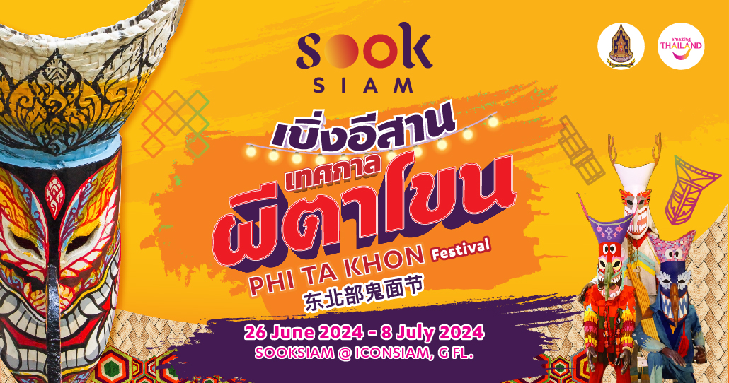 26 มิถุนาคม 2567 - 8 กรกฎาคม 2567ลองมาเบิ่ง ผีตาโขนนำกันบ่ ! สัมผัสประสบการณ์ใหม่! ที่งานเทศกาล “ผีตาโขน” ปี 2024 นี้กลับมาอีกครั้งที่ เมืองสุขสยาม ณ ไอคอนสยาม ชั้น G เทศกาลผีตาโขน เทศกาลผีตาโขน หรือ งานบุญหลวง หรือ บุญผะเหวด เป็นงานประเพณีและการละเล่นที่จัดขึ้นทุกปี ในช่วงเดือน 7 ณ อำเภอด่านซ้าย จังหวัดเลย สันนิษฐานว่า เป็นประเพณีที่มีมาตั้งแต่โบราณ โดย ได้รับอิทธิพลมาจากมหาเวสสันดรชาดก เล่าถึงตอนที่พระเวสสันดรและนางมัทรีต้องออกจากป่ากลับสู่เมือง เหล่าผีป่าและสัตว์นานาชนิดต่างอาลัยรัก จึงพากันมาส่งเสด็จ เทศกาลผีตาโขนที่เมืองสุขสยาม ณ ไอคอนสยาม ชั้น G ระหว่างวันที่ 26 มิ.ย. 2024 - 8 ก.ค. 2024 จุดประสงค์เพื่อเป็นการอนุรักษ์และเผยแผ่วัฒนธรรมไทยให้ไปไกลสู่ระดับโลก จึงมีการจัดเทศกาลผีตาโขนที่เมืองสุขสยาม ณ ไอคอนสยาม ชั้น G ที่สัมผัสบรรยากาศสุดพิเศษ งานประเพณีและการละเล่นท้องถิ่นในกรุงเทพมหานคร จัดเต็มทั้ง... Parade ขบวนแห่เทศกาลผีตาโขน สุดพิเศษ ระยะเวลา: 27 มิ.ย. 2024 (2 รอบ: 3PM & 5:30PM), 6 ก.ค. 2024 (1 รอบ: 3PM) พิกัด: รอบลานเมือง Happy Hour แซ่บเป็นคู่ ส้มตำไก่ย่างเพียง 50 บาท ระยะเวลา: 26 มิ.ย. 2024 - 8 ก.ค. 2024 (4-5PM) พิกัด: ลานเมือง 2 Daily Performances การแสดงสดทุกวัน ระยะเวลา: 26 มิ.ย. 2024 - 8 ก.ค. 2024 (ช่วงบ่าย) พิกัด: ลานเมือง 2 Workshop ทำของที่ระลึกผีตาโขน ฟรี! ระยะเวลา: 1 - 8 ก.ค. 2024 (1-5PM) พิกัด: ประตูสุขสุวรรณศาลา (ประตู 5) *สามารถ WALK-IN เข้ามาได้เลย *เวลาอาจมีการเปลี่ยนแปลงหน้างานตามความเหมาะสม *เงื่อนไขเป็นไปตามบริษัทกำหนด