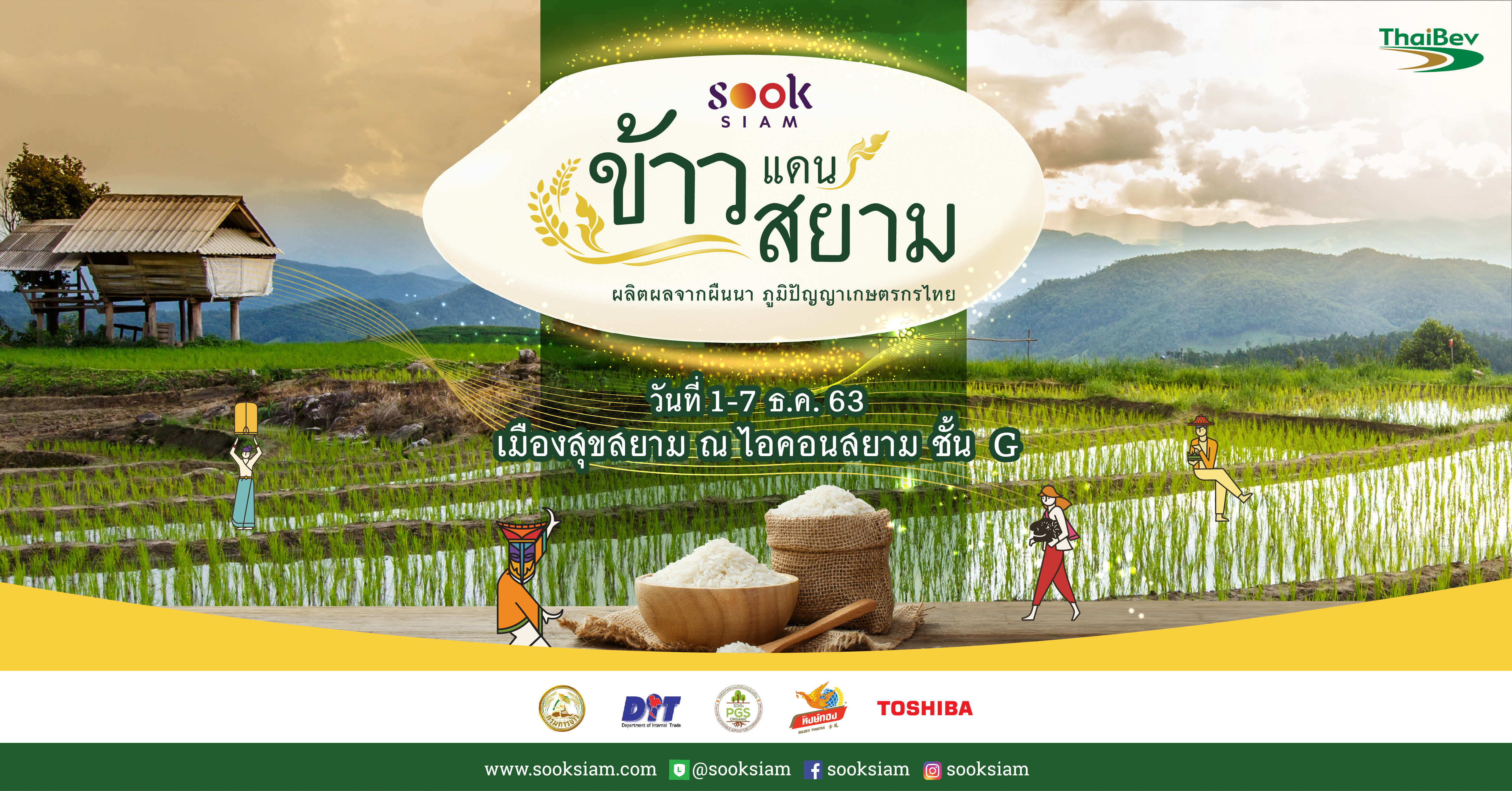 1 ธันวาคม 2563 - 7 ธันวาคม 2563เมืองสุขสยาม ณ ไอคอนสยาม ร่วมกับ กรมการข้าว กระทรวงเกษตรและสหกรณ์ กรมการค้าภายใน บริษัท ไทยเบฟเวอเรจ จํากัด (มหาชน) จัดงาน “ข้าวแดนสยาม” เปิดพื้นที่ต้อนรับข้าวไทยฤดูกาลใหม่ จากทั่วทุกภูมิภาคพร้อมจำหน่ายในราคาพิเศษ ช่วยสร้างรายได้อย่างยั่งยืนแก่ชาวนาไทย ระหว่างวันที่ 1 - 7 ธันวาคม 2563 พร้อมกิจกรรมที่นำคุณสู่ประสบการณ์สารพัดสุข สนุกแบบไทย ผ่านท้องทุ่งและรอยยิ้มจริงใจจากชาวนาและเกษตรกรไทย รวมทั้งองค์ความรู้จากการแลกเปลี่ยนทัศนคติ ของกลุ่มเกษตรและชุมชนสหกรณ์ ภายใต้แนวคิด “ปลูก แปร เปลี่ยน” ปลูก : • สัมผัสแปลงนา 4 ภาค จากท้องถิ่นสู่วิถีเมือง กับภูมิปัญญาแห่งความพอเพียง สัมผัส “ต้นน้ำ” ของการปลูกข้าว จุดกำเนิดและวิถีชีวิตชุมชน เพลิดเพลิน กับการแชะ&แชร์ภาพ แปลงนาข้าวตัวอย่าง ที่นำมาจำลองในพื้นที่จัดงาน • รู้จักกับ แปลงนาหยอดจำลองแบบแห้ง จาก “โครงการหงษ์ทองนาหยอด” โครงการนำร่องเพื่อการพัฒนาคุณภาพชีวิตเกษตรกรชาวนาไทย ให้ก้าวสู่การปลูกข้าววิถีใหม่ ทดแทนการทำนาหว่านแบบดั้งเดิม ได้กอข้าวขนาดใหญ่ เพิ่มผลผลิต สร้างรายได้สูงขึ้น หลังฤดูเก็บเกี่ยว แปร : • เปิด “บาร์ข้าวสวยสีสด” กับกิจกรรมสีสดที่บาร์ข้าว สาธิตการสีข้าวจากเครื่องสีข้าวครัวเรือน “พร้อมสี”ตอบโจทย์วิถีคนเมือง ในรูปแบบ “บาร์ข้าวไทย” แห่งแรกและแห่งเดียวในเมืองไทย รวมข้าวพื้นเมือง 20 พันธุ์ หุงสุกใหม่จากภูมิภาคต่างๆ ทั่วเมืองไทย โดยหม้อหุงข้าวไฟฟ้าจากโตชิบา เปิดบาร์ให้เลือกชิมฟรี! นำโดย ข้าวพื้นเมืองภาคใต้ : ข้าวหอมไชยา จ.สุราษฎร์ธานี, ข้าวพื้นเมืองภาคอีสาน : ข้าวปะกาอำปึล (ดอกมะขาม) จ.สุรินทร์, ข้าวพื้นเมืองภาคเหนือ : ข้าวพญาลืมแกง ข้าวเหนียวพันธุ์ไร่พื้นเมือง จ.เพชรบูรณ์, ข้าวพื้นเมืองภาคกลาง : ข้าวขาวเงิน คุณภาพการขัดสีดี สะอาด ปราศจากสิ่งปลอมปน • ช้อป - ชิม - ชิลล์ ตามเทรนด์ กับ “ตลาดกลางนา” ร่วมช้อปสินค้านวัตกรรม เพิ่มมูลค่าให้ข้าวไทย ที่แปรรูปข้าวไทย เป็นผลิตภัณฑ์ในหลากหลายมิติ อาทิ ข้าวเป็นยา ข้าวเป็นเวชสำอาง ข้าวเพื่อการตกแต่ง เปลี่ยน : • นิทรรศการความมหัศจรรย์แห่งข้าว และคุณประโยชน์ของข้าวในยุค 4.0 ที่เปลี่ยนผ่านเทคโนโลยีจากอดีตสู่อนาคต อาทิ ข้อมูลความก้าวหน้าในการปลูกข้าว อุปกรณ์และเทคโนโลยีทางการเกษตร เพื่อแสดงให้เห็นถึงศักยภาพของการเกษตรกรรมไทย • เวิร์กชอปศิลปะจากเมล็ดข้าว แปลงโฉมข้าวไทยเป็นงานศิลป์ อาทิ ภาพศิลปะจากเมล็ดข้าว จี้เมล็ดข้าว เข็มกลัดดอกไม้จากข้าวเปลือก ต่างหูประดิษฐ์จากเมล็ดข้าว ที่ทับกร