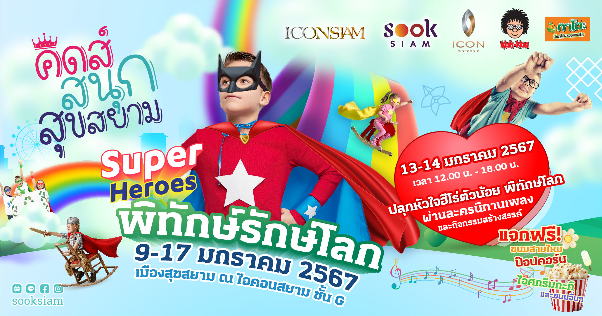 9 มกราคม 2567 - 17 มกราคม 2567ช่วงเวลาแห่งความสนุกกำลังจะเริ่มต้นขึ้น ที่เมืองสุขสยาม ณ ไอคอนสยามแล้วจ้าาาาาา เมืองสุขสยาม ณ ไอคอนสยาม ร่วมกับ ไอคอน ซีเนคอนิค ,ผลิตภัณฑ์โก๋แก่ และน้ำผลไม้ผสมวุ้นมะพร้าว กาโตะ ต้อนรับวันเด็กแห่งชาติ ปี 2567 ชวนน้องๆหนูๆ เที่ยวงาน " คิดส์สนุกสุขสยาม " มาร่วมเป็น Super Heroes พิทักษ์รักษ์โลก เพลิดเพลิน สนุกสนานไปกับ โชว์การแสดง และกิจกรรมพัฒนาทักษะเพิ่มความรู้ ที่ครอบครัว ได้สนุกกันครบๆ ทั้งบ้านไปเลยจ้า วันที่ 13, 14 ม.ค. 67 พบกับละครนิทานเพลง รอบเวลา 13.00 น. - 13.30 น. พบกับละครนิทานเพลง "สามสหายพิทักษ์โลก" รอบเวลา 15.00 น. - 15.30 น. พบกับละครหุ่นมือ "เมล็ดปริศนา" รอบเวลา 17.00 น. - 17.30 น. พบกับนิทานดนตรี "เทพนิยายรักษ์โลก" สนุกสุขสร้างสรรค์ ท่องโลกกับ 5 ฐานกิจกรรม รับ Passport ร่วมกิจกรรม Workshop ระบายสีปลาตะเพียนใยบวบ ระบายสีหน้าหนุมานฮีโร่ไทย เพ้นท์ชื่อตัวเองบนตุ๊กตานกฮูก สร้างสรรค์ที่ติดตู้เย็นรูปผีเสื้อ พวงกุญแจ Smiley สุดพิเศษ ภายในงานแจกฟรี ขนมสายไหม ป๊อปคอร์น ไอศกรีมกะทิ และขนมอื่นๆอีกมากมาย มาร่วมปลุกหัวใจฮีโร่ตัวน้อย ที่งาน คิดส์สนุก สุขสยาม ตั้งแต่วันนี้ - 17 ม.ค. 67 เมืองสุขสยาม ณ ไอคอนสยาม ชั้น G