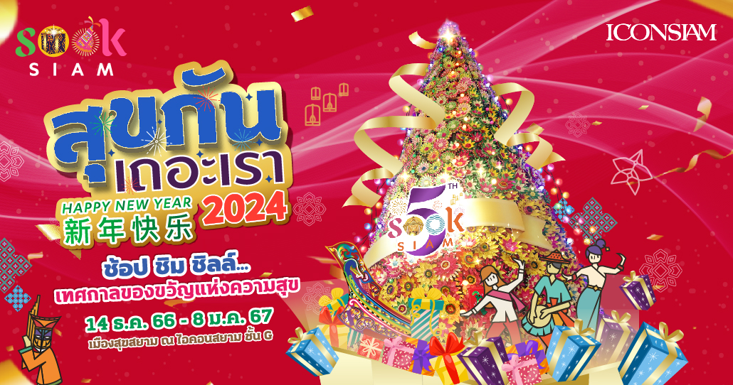 14 ธันวาคม 2566 - 8 มกราคม 2567เตรียมนับถอยหลังส่งท้ายปี เมืองสุขสยาม ขอเชิญทุกท่าน เฉลิมฉลองเทศกาลแห่งความสุข ในงาน “สุขกันเถอะเรา 2024” #ชวนมาช้อป ของขวัญ ในเทศกาลของขวัญแห่งความสุข จากร้านค้าทั่วเมืองสุขสยาม ในราคาสุดพิเศษ เพื่อส่งต่อให้กับคนที่คุณรัก #ชวนมาชิม อาหารไทย Street Food 4 ภาค ไม่ว่าจะของทานเล่น ของคาว ของหวาน เมนูอาหารแซ่บ หรือซีฟู้ด มีครบจบที่เมืองสุขสยาม #ชวนมาเดินชิลล์ ถ่ายรูปกับต้นคริสต์มาสรักษ์โลก ที่สูงกว่า 7 เมตร ภายใต้แนวคิด "ดอกไม้เบ่งบานรับความสุข" ต้อนรับเทศกาลปีใหม่ #ชวนมาสนุก ไปกับกิจกรรมต่างๆที่อัดแน่น กิจกรรมร้องเพลงประสานเสียงต้อนรับวันคริสต์มาส Workshop การทำของขวัญมอบให้กับคนพิเศษ จากโครงการโรง.เรียน.ชีวิตชีวา สุดตื่นตาตื่นใจกับขบวนพาเหรด carnival และร่วมสนุกสนานข้ามปีไปด้วยกันกับการแสดงรำวงย้อนยุค จัดเต็มความสุขแน่นขนาดนี้ ต้องห้ามพลาด!! ที่งาน "สุขกันเถอะเรา 2024" ตั้งแต่วันนี้ - 8 ม.ค. 67 เมืองสุขสยาม ณ ไอคอนสยามชั้น G
