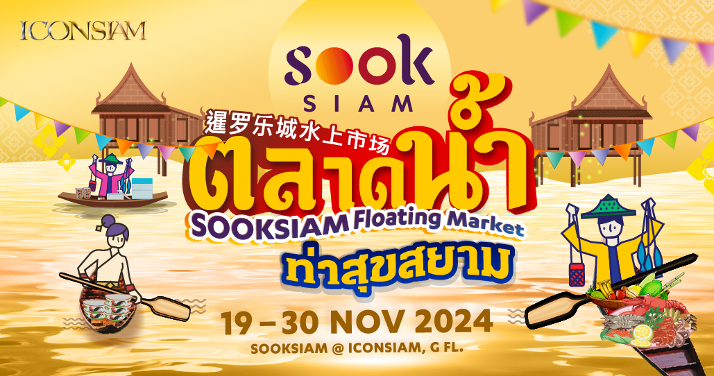 19 พฤศจิกายน 2567 - 30 พฤศจิกายน 2567สายกินห้ามพลาด! กับพื้นที่รวมเมนูอาหารรสชาติไทยแท้ ๆ จากทุกทิศทั่วไทย มารวมไว้ให้แล้วที่นี่! เปิดประสบการณ์ความอิ่มอร่อยกับเมนูที่ได้ยินชื่อแล้วเปรี้ยวปาก ทั้งกุ้งแม่น้ำเผา อาหารทะเล ส้มตำปลาร้า ขนมไทย และหลากหลายเมนูสุดแซ่บ ที่มีให้เลือกชิมอย่างครบรสในงานตลาดน้ำท่าสุขสยาม “SOOKSIAM Floating Market” ที่เมืองสุขสยาม ณ ไอคอนสยาม วันที่ 19 - 30 พ.ย 67 เมืองสุขสยาม ณ ไอคอนสยาม ชั้น G *เวลาอาจมีการเปลี่ยนแปลงหน้างานตามความเหมาะสม *เงื่อนไขเป็นไปตามที่บริษัทกำหนด