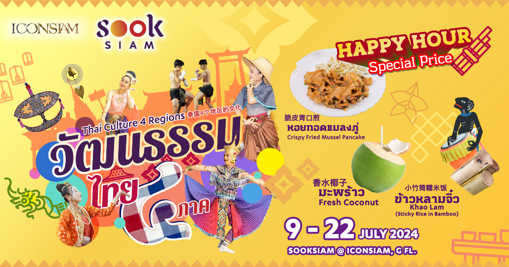 1 มิถุนาคม 2567 - 13 มิถุนาคม 2567เมืองสุขสยาม ขอเชิญทุกท่าน พากันมาอร่อยที่งานอาหารไทย ๔ ภาค ใครเป็นสายนักกินนักช็อปนักล่าของอร่อย บอกเลย ต้องห้ามพลาดมางานนี้ สุดพิเศษพบกับกิจกรรม #SOOKสนุก จัดโปรเดือดนาทีทอง ผัดไทยโบราณ ในราคาพิเศษ 50 บาทเท่านั้น พบกันช่วงเวลา 13.00 น. - 14.00 น. บริเวณซุ้มดอกเห็ด ลานเมือง 2 อยากอีทอาหารแบบครบ ๔ ภาค #SOOKแซ่บ เมนูคาว หวาน ต้องมาที่งานอาหารไทย ๔ ภาค ตั้งแต่วันนี้ - 13 มิ.ย. 67 เมืองสุขสยาม ณ ไอคอนสยาม ชั้น G
