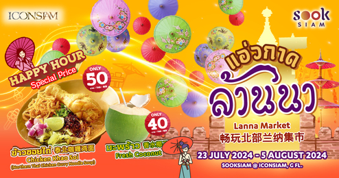 23 กรกฎาคม 2567 - 5 สิงหาคม 2567เมืองสุขสยามชวนทุกท่านมาเดิน "งานแอ่วกาดล้านนา" ที่รวบรวมทัพอาหารเหนือ ตี้ลำขนาด! ทั้งข้าวซอย, ขนมจีนน้ำเงี๊ยว, แคปหมู, ข้าวแกงฮังเล, ลาบคั่ว, น้ำพริกหนุ่ม พร้อมรับชมการแสดงสุดพิเศษ ตลอดทั้งงาน ที่งาน “แอ่วกาด ล้านนา” ระยะเวลา: 23 ก.ค. 67 - 5 ส.ค. 67 พิกัด: เมืองสุขสยาม ณ ไอคอนสยาม ชั้น G SOOKSIAM @ ICONSIAM, G fl. มาร่วมสัมผัสประสบการณ์สารพัดสุขสนุกแบบไทย ภายใต้ Concept ช็อป ชิม ชิล ที่พร้อมต้อนรับทุกท่านในงานทั้ง... Royal Performances การแสดงเฉลิมพระเกียรติพระบาทสมเด็จพระเจ้าอยู่หัว "๗๒ พรรษา เทิดไท้องค์ราชัน" ระยะเวลา: วันที่ 26 - 28 ก.ค. 67 พิกัด: ลานเมือง 2 Northern Thai Food ซุ้มข้าวซอย รวมร้านอาหารเหนือ ตี้ลำขนาด พิกัด: ลานเมือง 2 Happy Hour ข้าวซอยไก่ ขนมจีนน้ำเงี๊ยว มะพร้าว ราคาพิเศษ ระยะเวลา: ทุกวัน - 5 ส.ค. 67 (13.00-14.00, 16.00-17.00) พิกัด: ลานเมือง 2 Thai Performances กิจกรรมการแสดง วันที่: ทุกวันพุธ-วันพฤหัสบดี การแสดงศิลปวัฒนธรรมไทย 4 ภาค (15.00) วันที่: ทุกวันศุกร์ การแสดงศิลปะแม่ไม้มวยไทย - ศรศิลป์ (15.00) ถ่ายทอดสดการแข่งขันชกมวยไทยสากล จากเวที One Lumpinee (19.30) วันที่: ทุกวันเสาร์ การแสดงโขน (15.00) วันที่: ทุกวันอาทิตย์ การแสดงประชันเปิงมางคอกสำแดงสดโชว์ (15.00) พิกัด: ลานเมือง 2 *เวลาอาจมีการเปลี่ยนแปลงหน้างานตามความเหมาะสม *เงื่อนไขเป็นไปตามที่บริษัทกำหนด