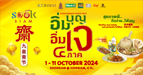 1 ตุลาคม 2567 - 11 ตุลาคม 2567กินเจปีนี้ ชี้เป้า #อิ่มบุญ...อิ่มเจ กับอาหารเจสารพัดเมนู ที่เมืองสุขสยาม ณ ไอคอนสยาม ในงาน "SOOKSIAM อิ่มบุญ อิ่มเจ 4 ภาค" ภายใต้คอนเซปต์ "สุขภาพดี กินง่าย ได้บุญ" ที่รวบรวมเมนูเจแสนอร่อยจากทั่ว 4 ภาคทั่วไทย พร้อมสักการะ “พระโพธิสัตว์กวนอิม ปางพันกร” ที่อัญเชิญมาประดิษฐานที่เมืองสุขสยาม ซึ่งจะมีพิธีเบิกเนตรในวันที่ 2 ตุลาคม 2567 เวลา 11.00 น. เพื่อให้ทุกคนเริ่มต้นเทศกาลเจด้วยความอิ่มบุญที่สุด พร้อมชมการแสดงศิลปวัฒนธรรมไทย-จีน ดนตรีกู่เจิง และการแสดงเปลี่ยนหน้ากากจีน สลับสับเปลี่ยนกันไปตลอดช่วงเทศกาลกินเจ ที่เมืองสุขสยาม ณ ไอคอนสยาม ชั้น G SOOKSIAM @ ICONSIAM, G fl. #อิ่มใจ...สุขสยามยังร่วมกับผู้ประกอบการร้านค้าและพันธมิตรอย่างธนาคารกสิกรไทย และบริษัท ไทย อกริ ฟู้ดส์ จำกัด (มหาชน) เรียลไทย จัด "กิจกรรมเปิดโรงเจหม้อใหญ่" แจกอาหารเจวันละ 100 กล่อง แก่โรงพยาบาลและชุมชนในเขตคลองสาน พร้อมเติมเต็มทุกความสุขที่เมืองสุขสยาม อิ่มท้อง...อิ่มใจ...สุขภาพดีครบในที่เดียว! *เวลาอาจมีการเปลี่ยนแปลงหน้างานตามความเหมาะสม *เงื่อนไขเป็นไปตามที่บริษัทกำหนด