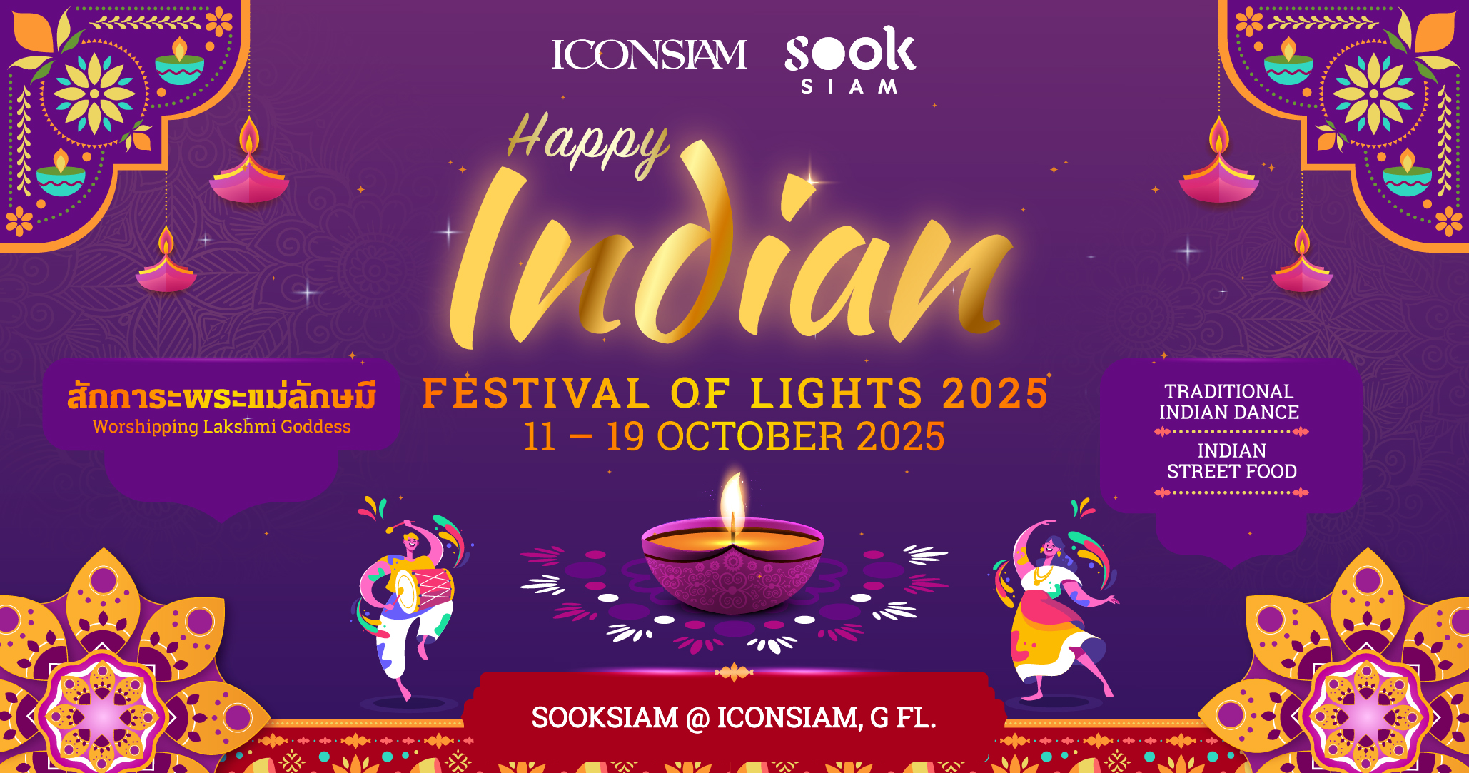 5 พฤศจิกายน 2564 - 7 พฤศจิกายน 2564กลับมาอีกครั้งกับเทศกาลดีวาลี เทศกาลแห่งแสงสีจากแดนภารตะที่มีประวัติศาสตร์ยาวนานนับพันปี The Great Indian Diwali Festival มาร่วมเฉลิมฉลอง #งานเทศกาลที่ยิ่งใหญ่ที่สุดของคนเชื้อสายอินเดีย วันที่ 5-7 พฤศจิกายน 2564 บริเวณลานเมือง เมืองสุขสยาม ณ ไอคอนสยาม ชั้น G พร้อมการให้บริการภายใต้มาตรการความปลอดภัยสูงสุด ร่วมเฉลิมฉลองไปกับความสนุกสนาน พร้อมจุดประกายความหวังให้อุตสาหกรรมการท่องเที่ยวไทยกลับมามีชีวิตชีวาอีกครั้ง กับแสง สี เสียงของกิจกรรมต่างๆ ภายในงาน อาทิ การแสดงเชิงวัฒนธรรมสุดอลังการ แสง สี เสียงสไตล์บอลลีวูด - สักการะ "พระพิฆเนศ" เสริมดวงชะตา โชคลาภ เพิ่มความสำเร็จให้ชีวิต - ลิ้มลองหลากหลายเมนู คาว-หวาน จากภัตตาคารอินเดียสไตล์มหาราชาชื่อดังในประเทศไทย - ช้อปสินค้าสไตล์อินเดียนจากร้านค้าชื่อดังทั้งส่าหรี เครื่องประดับ ของตกแต่ง และอื่นๆอีกมากมาย รวมถึง Voucher โรงแรม ที่พัก ร้านอาหารใภายนประเทศราคาพิเศษ มาสัมผัสสีสันทางวัฒนธรรมที่หลากหลาย ในงาน The Great Indian Diwali Festival เทศกาลของชาวไทยเชื้อสายอินเดียและชาวอินเดียโพ้นทะเล เพื่อรำลึกถึงเรื่องราวที่พระรามทรงมีชัยเหนือทศกัณฐ์และเสด็จพร้อมพระนางสีดา พระมเหสี กลับนิวัติสู่กรุงอโยธยา โดยจะมีการจุดเทียน ตะเกียง พลุดอกไม้ไฟ และประทัด เฉลิมฉลองทั่วทั้งประเทศอินเดีย และในทุกชุมชนที่ชาวอินเดียอาศัยอยู่ทั่วโลก ซึ่งเป็นประเพณีที่มีการสืบทอดจวบจนถึงปัจจุบัน